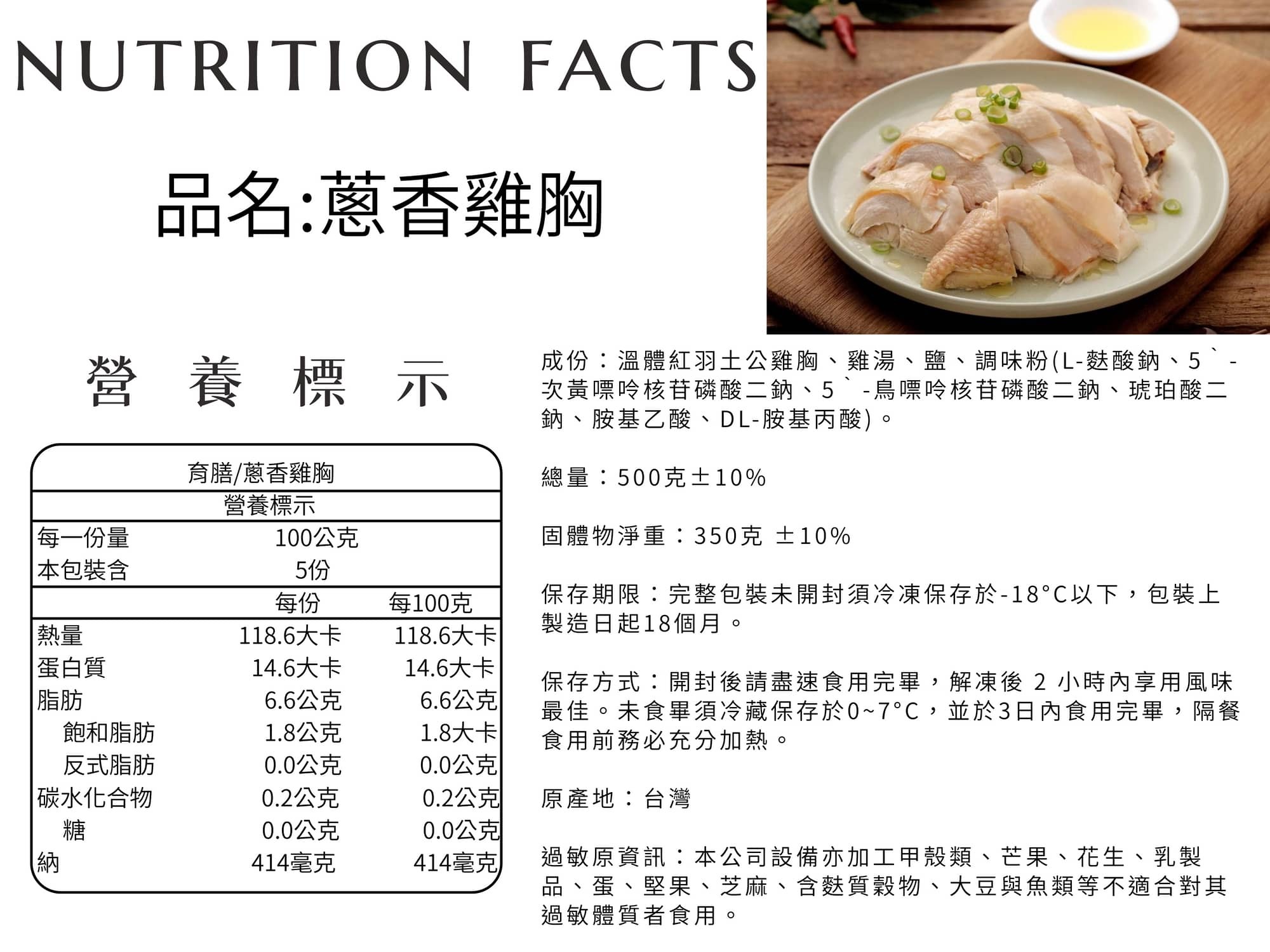 育膳蔥香雞胸,低脂又含有豐富蛋白質的雞胸肉是健康料理的必備之選,肉質Q彈,不柴不乾,解凍後淋上蔥油即可享受低卡、安心的健康美味。